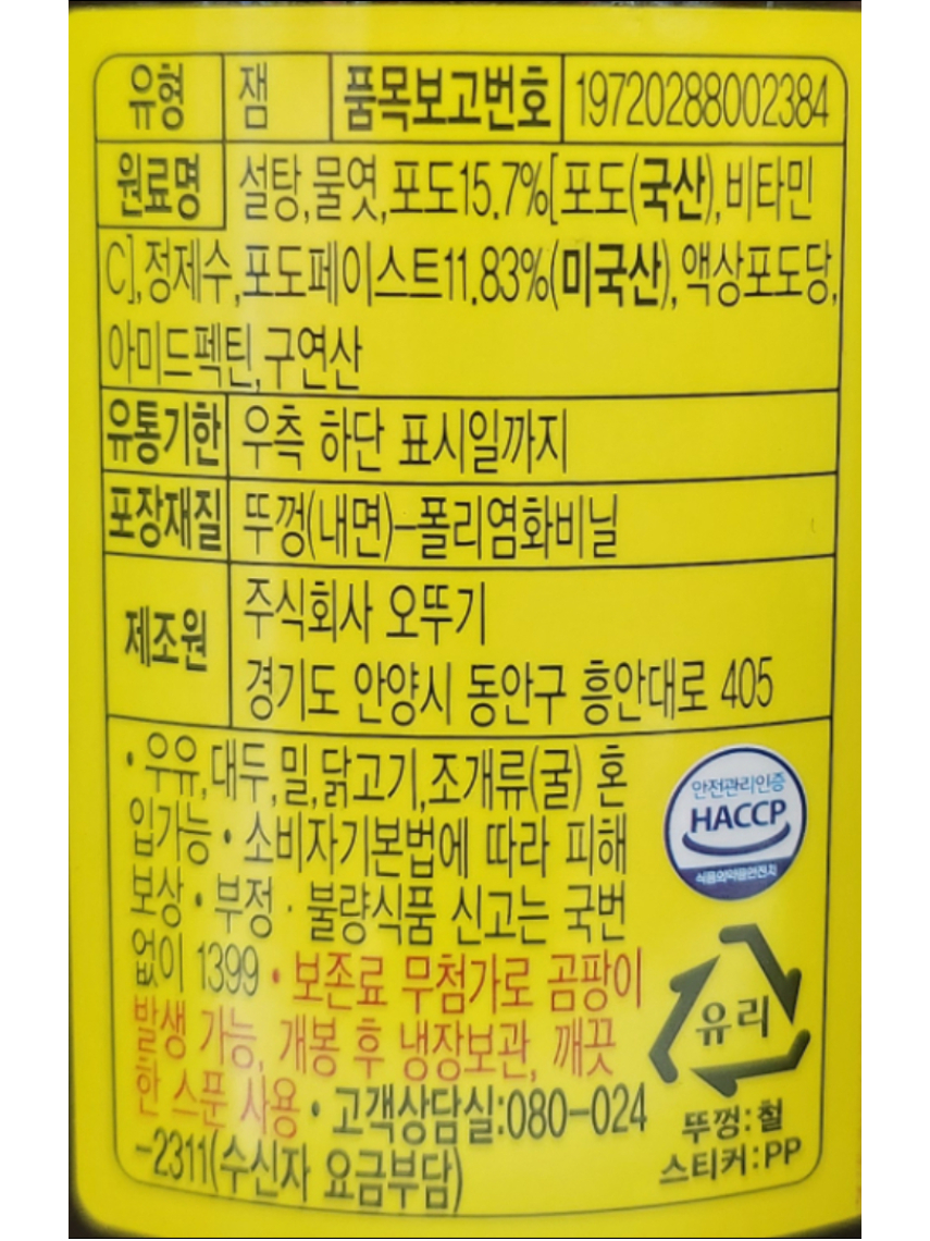 오뚜기)포도쨈 500g