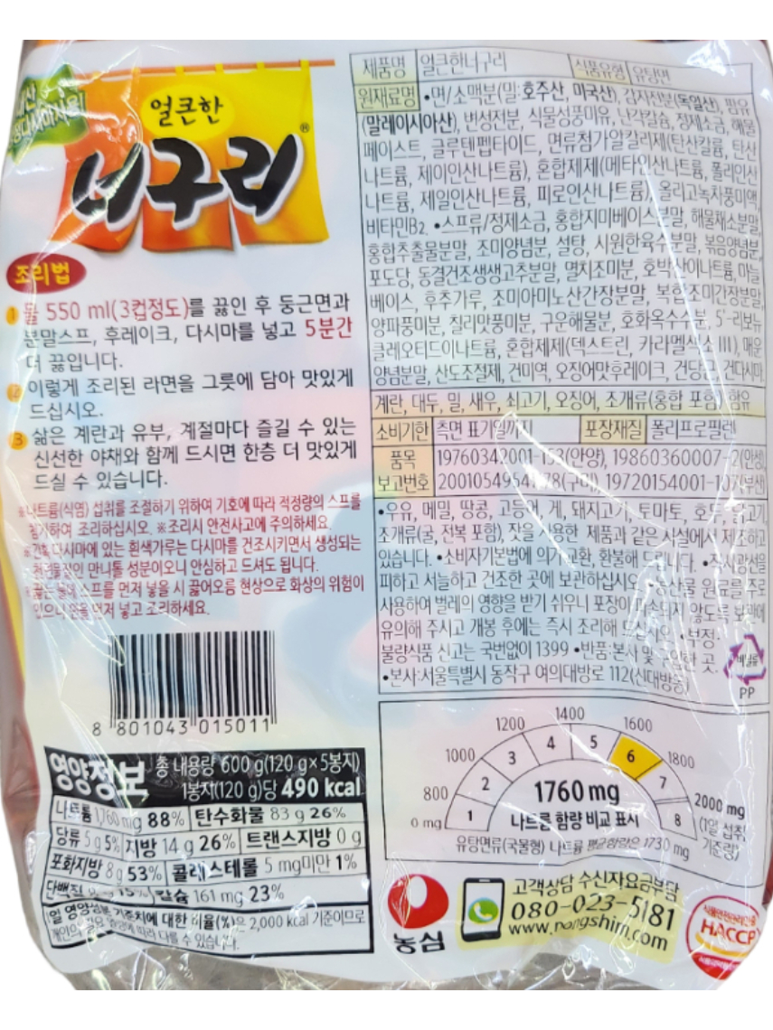 농심)너구리얼큰한맛(멀티) 120g*5